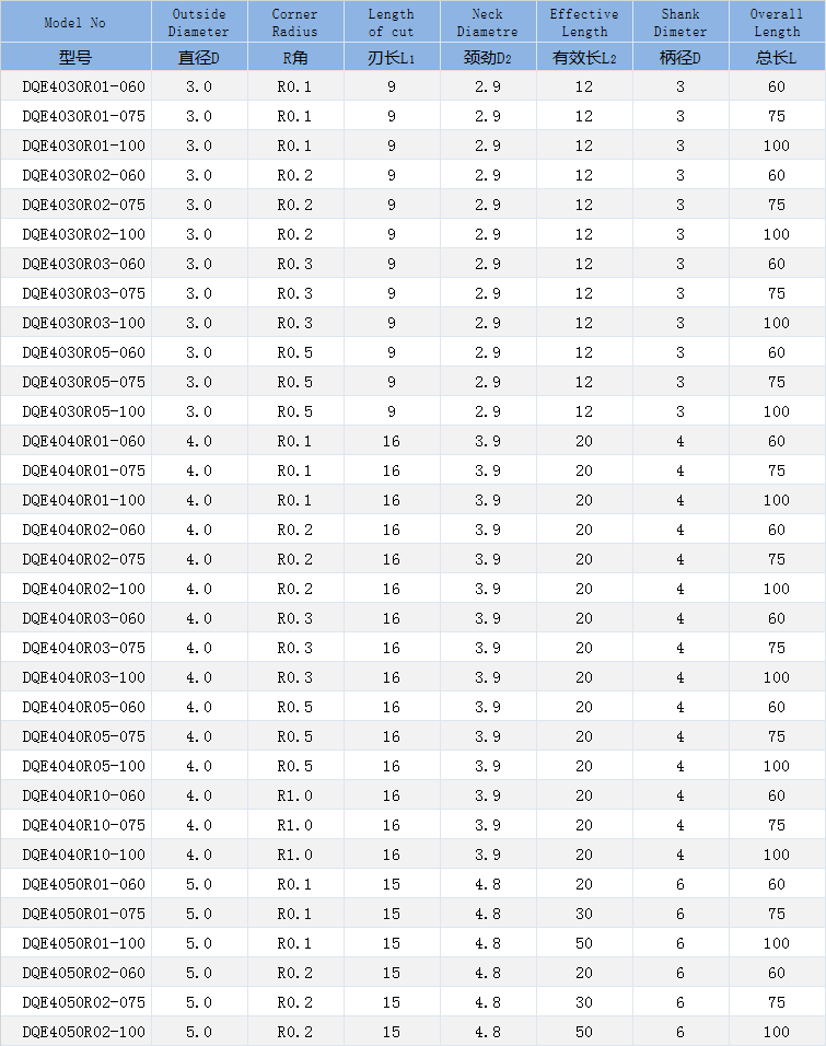 四刃圓鼻銑刀-石墨圓鼻銑刀